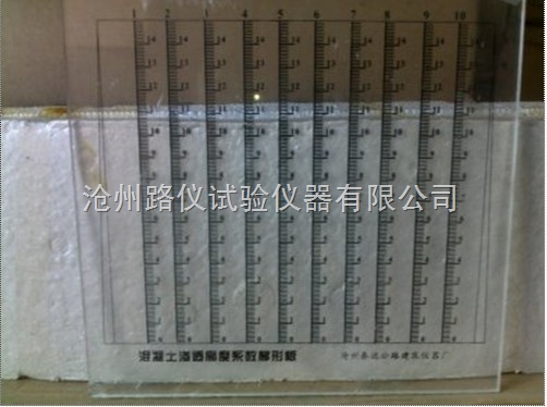 3、將梯形玻璃板放在試件劈裂面上,用尺測量十條線的滲水高度(至1mm)。