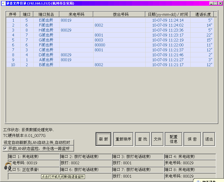 □ 通道號,通道名稱,來電、去電號碼,通話時間,通話時長一應(yīng)俱全