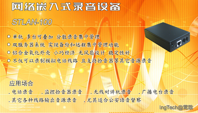 基于LAN、VLAN甚至WAN的網(wǎng)絡(luò)嵌入式解決方案,錄音需求的系統(tǒng)集成將變得簡單、靈活、快速。