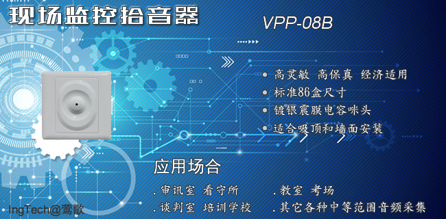 本款拾音器適應(yīng)于銀行、監(jiān)獄、考場(chǎng)、商場(chǎng)、工業(yè)生產(chǎn)等多種監(jiān)聽拾音場(chǎng)所,具有噪聲小、保真度高、工作電壓范圍寬、耗電小、傳輸距離遠(yuǎn)等優(yōu)點(diǎn)。VPP-08B是一種新型靈敏度可調(diào)節(jié)的拾音器,是電視監(jiān)控、安防系統(tǒng)配套使用最理想的產(chǎn)品,本拾音器和攝像機(jī)配合使用實(shí)現(xiàn)視音頻同步。