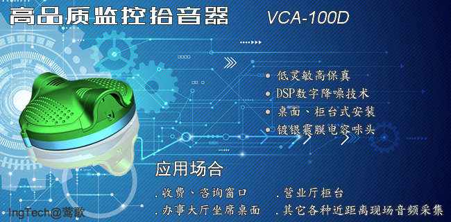 VCA-100D專為小范圍、近距離聲音采集而設計,靈敏度較低,采用高品質的音頭。