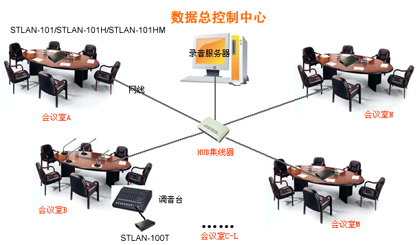 對(duì)于單個(gè)會(huì)議室等獨(dú)立的環(huán)境,DRM-100T已經(jīng)被市場(chǎng)認(rèn)可和采納,當(dāng)眾多會(huì)議室同時(shí)錄音,并且希望對(duì)數(shù)據(jù)進(jìn)行集中管理,那么可以采用SWIFTCN雨燕推出的新款現(xiàn)場(chǎng)錄音設(shè)備STLAN-100T,它自帶網(wǎng)口,本身不保存數(shù)據(jù),通過內(nèi)網(wǎng)實(shí)時(shí)將錄音數(shù)據(jù)傳輸至錄音服務(wù)器,所有終端的音頻文件被數(shù)字化,保存在同一臺(tái)計(jì)算機(jī)硬盤里,便于保存、管理。還可以實(shí)時(shí)監(jiān)聽各個(gè)通道的即時(shí)發(fā)言。非常適合同一局域網(wǎng)內(nèi)的多點(diǎn)分散錄音及集中管理的應(yīng)用環(huán)境。更重要的支持多個(gè)客戶端同時(shí)訪問錄音數(shù)據(jù),客戶端無需安裝任何其他軟件。