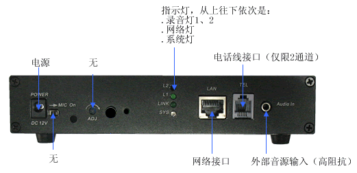 基于它嵌入式的運(yùn)行方案,使得它能靈活適用除電話線路以外的多種模擬信號(hào)音的錄制,諸如調(diào)音臺(tái)、功放、對(duì)講機(jī)、無線電臺(tái)、拾音器等等。