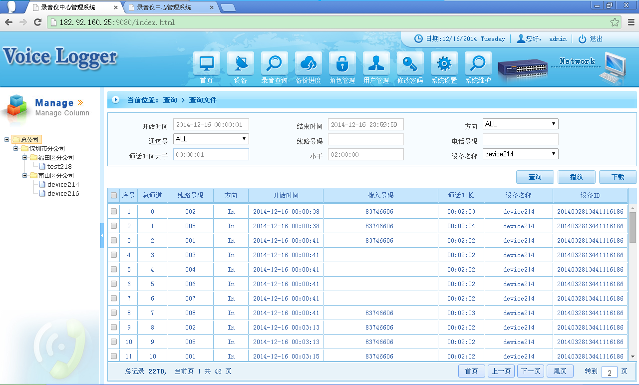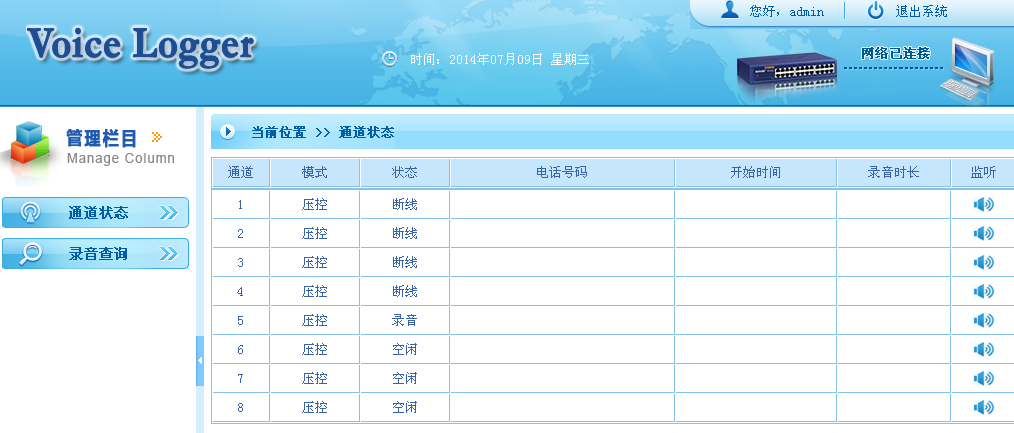 錄音查詢管理:通過(guò)WEB瀏覽器直接對(duì)設(shè)備進(jìn)行查詢播放