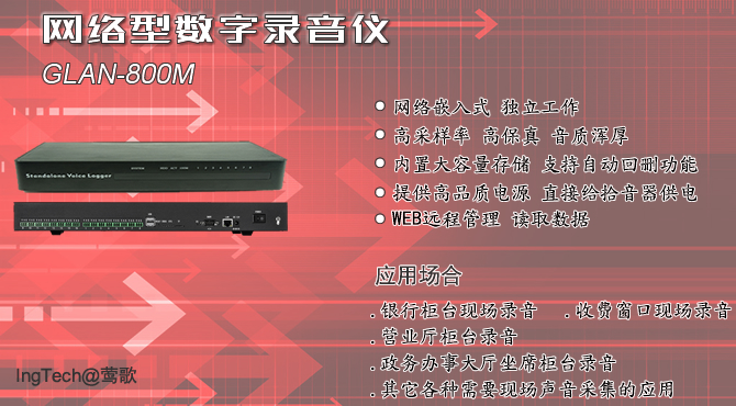語(yǔ)音存儲(chǔ)方式:硬盤(1T/2T)、TF卡(僅限GLAN-800M八軌)