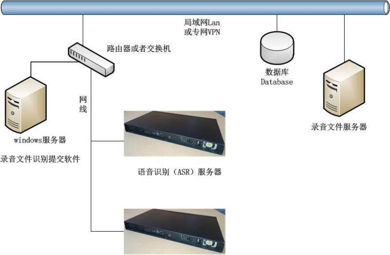 在內(nèi)網(wǎng)部署一至多臺雨燕電子語音識別服務(wù)器;找一臺運(yùn)行windows系統(tǒng)的電腦,運(yùn)行雨燕電子或第三方生成的錄音文件提交識別軟件。